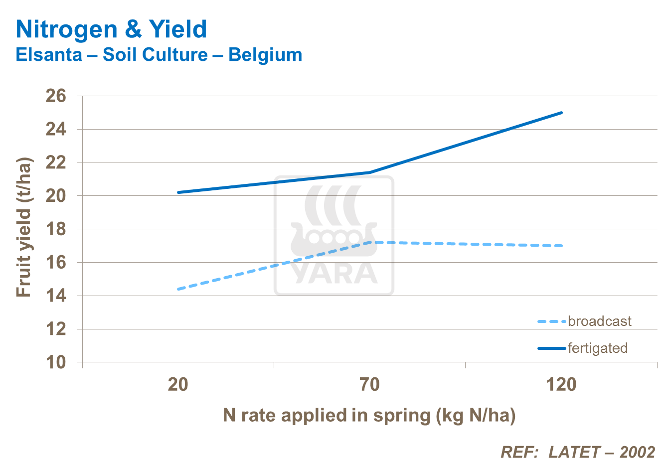 Azotul este esențial pentru creșterea plantelor fiind unul dintre principalele constituent al proteinelor. Este important pentru producția de biomasă și producția de fructe, maximizând asimilarea fotosintetică, conducând la randamente ridicate de căpșuni.