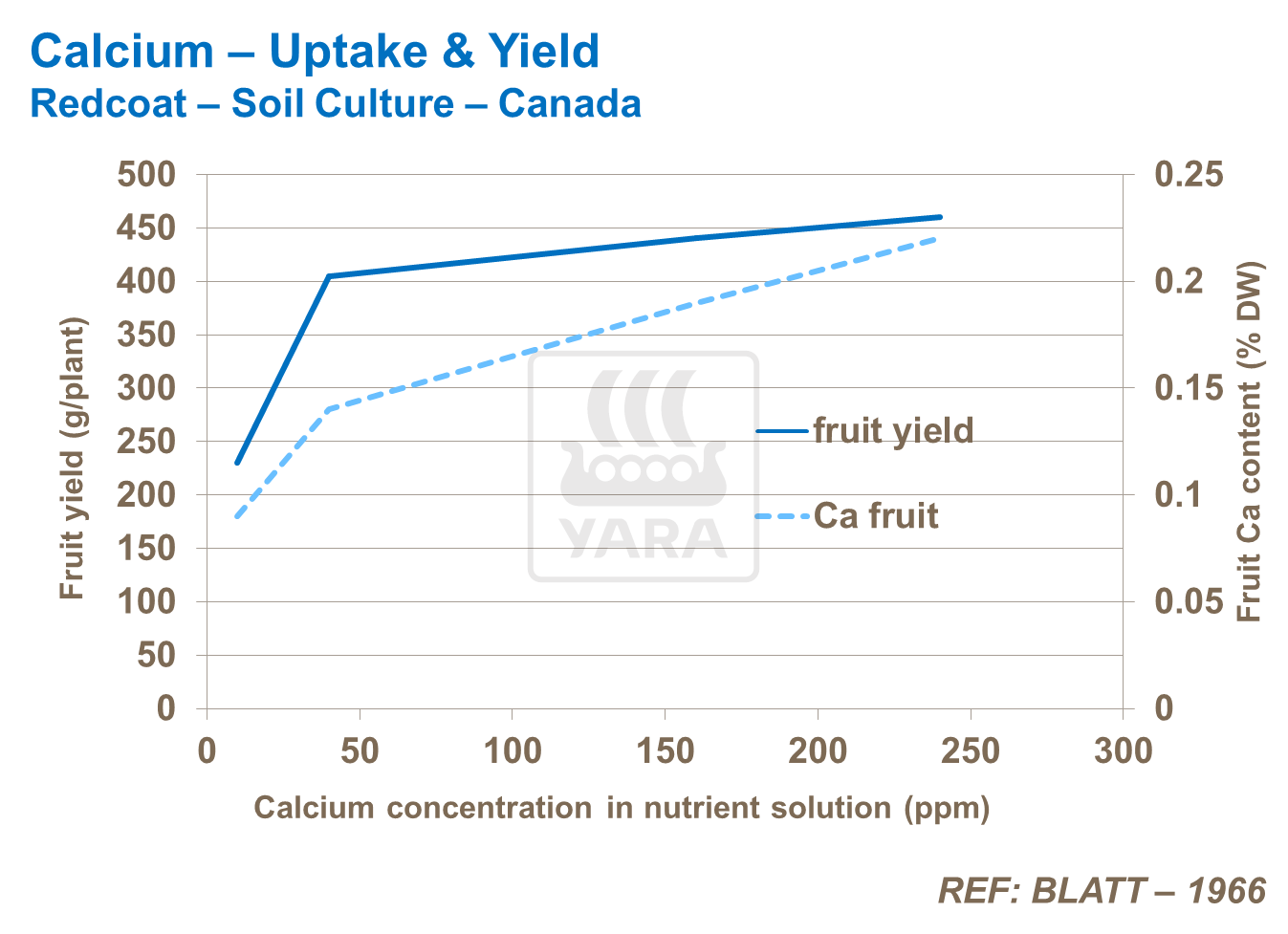 Calciul susține dezvoltarea radiculară și formarea culturilor, inclusiv creșterea frunzelor tinere și a mugurilor. Acesta joacă un rol-cheie în menținerea stabilității fiziologice a țesuturilor vegetale, asigurând o bună structură a ţesuturilor plantelor și sănătatea acestora. De exemplu, calciul formează pereții puternici ai celulelor și este vital pentru integritatea și permeabilitatea membranei celulare. In plus, Ca ajuta la îmbunătăţirea toleranţei plantelor la boli şi salinitate, menţinând o creştere bună, fără stres.