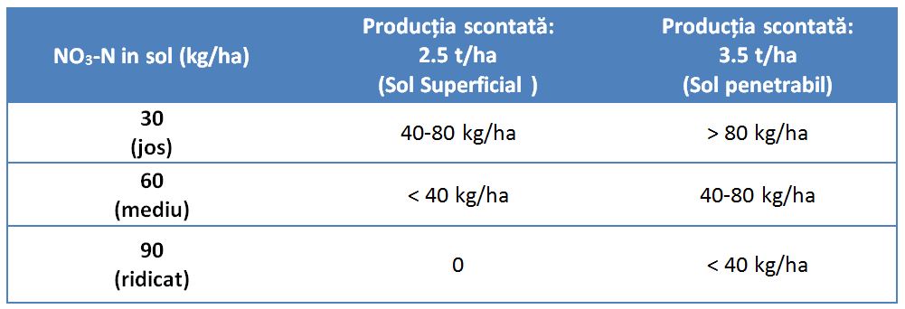 Cu toate acestea, cea mai mare cantitate de consum e a azotului este între 10 frunze (B10) și începutul înfloririi (F1), de aceea treuie avut grijă ca acest element sa nu fie in exces (40-100kg s.a./ha maxim) pentru a evita apariția bolilor și sensibilitatea plantei la cădere.