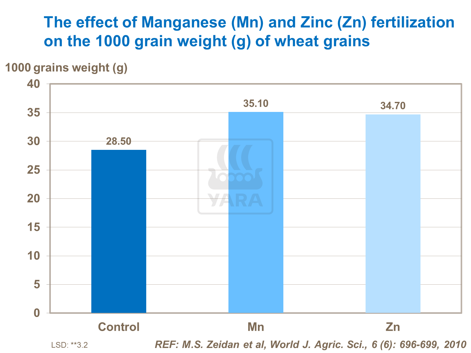 Atât manganul cât și zincul,au rolurile în metabolizarea azotului de către plante, vor îmbunătăți greutatea grâului.