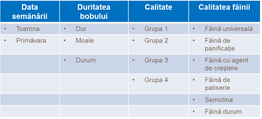 Soiurile de grâu pot fi clasificate în funcţie de calitatea bobului: