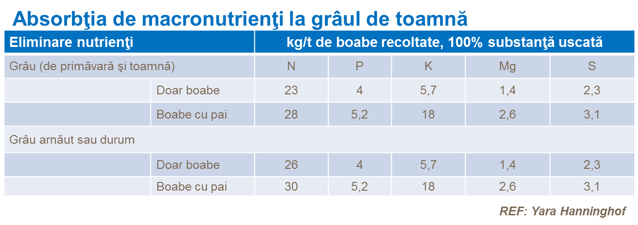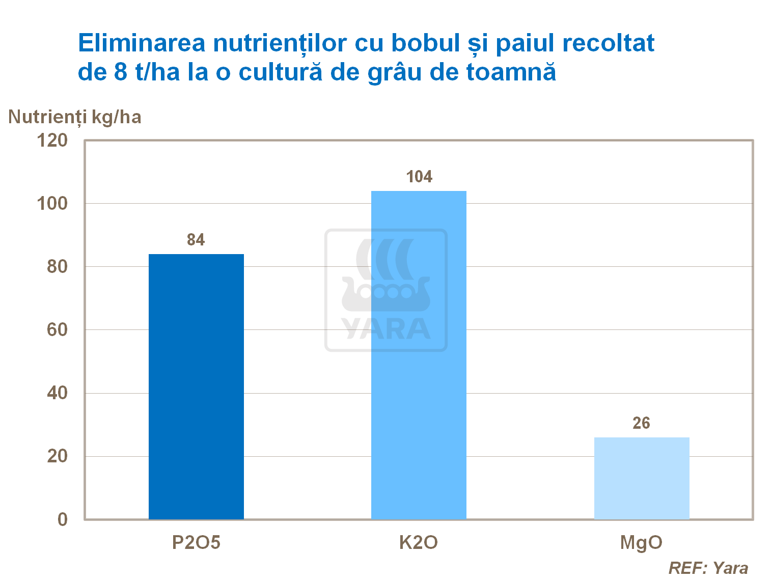 O abordare pentru susţinerea nivelului de nutrienţi este calcularea eliminării prin cultura recoltată şi asigurarea faptului ca aceşti nutrienţi să fie înlocuiţi în cursul ciclului de rotaţie. Tabelul următor este orientativ, mai multă acurateţe se poate obţine prin analiza în laborator a materialului recoltat.