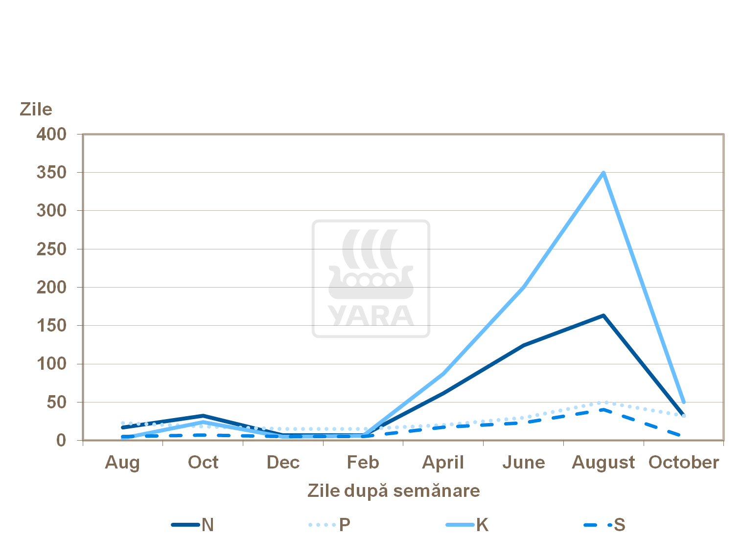 Azotul și potasiul sunt substanțele nutritive necesare în cea mai mare cantitate pentru menținerea unei producţii ridicate de grâu.