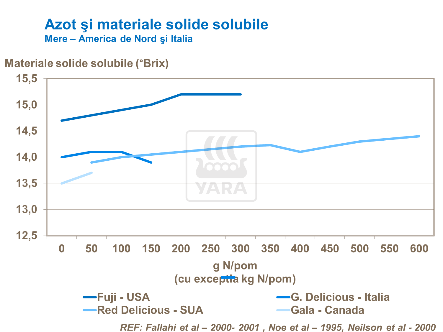 Azotul are un efect pozitiv asupra conţinutului de TSS din fructele seminţoase. Potasiul joacă deasemenea un rol important in determinarea nivelului de dulceaţă a fructelor, aşa cum a fost dovedit prin analize efectuate în India cu măsurare 0Brix. °Brix-ul este folosit pentru aprecierea conţinutului de TSS, deoarece zahărurile solubile reprezintă de obicei 75 – 85% din materialele uscate solubile.
