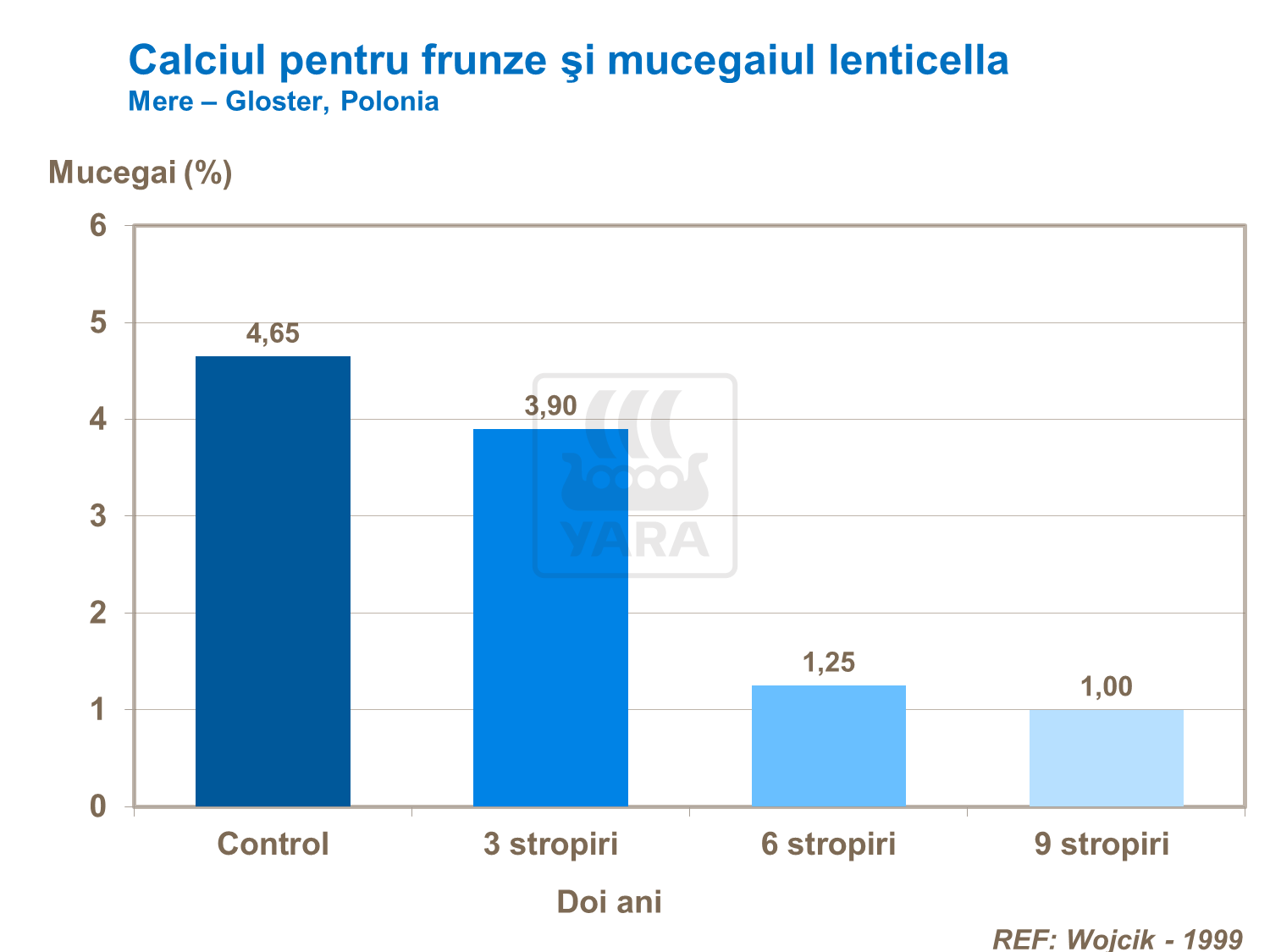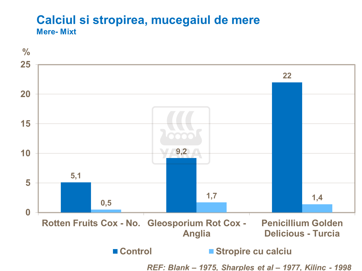 Putregaiul poate fi redus la minimum prin utilizarea de calciu. Absorbţia repetată prin intermediul fructelor este eficient faţă de astfel de daune.