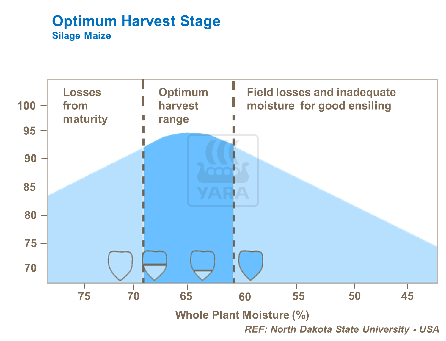 Porumbul pentru siloz este recoltat când planta este încă verde şi boabele nu sunt încă la fel de dezvoltate ca la recolta porumbului boabe. Recoltarea trebuie efectuată când conţinutul de substanţă uscată a porumbului atinge 28-35% sau când devine vizibilă linia laptelui, astfel se poate obţine cea mai eficientă însilozare atât din punct de vedere al cantităţii, cât şi al calităţii.
