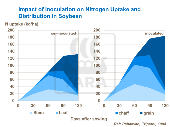 Procesele de inoculare sunt importante pentru menținerea N în plantă și determină creșteri semnificative ale randamentului. În zone noi, inocularea este incontestabilă; Aceste bacterii nu sunt originare din Brazilia, prin urmare trebuie adăugate pentru a obține randamente ridicate.