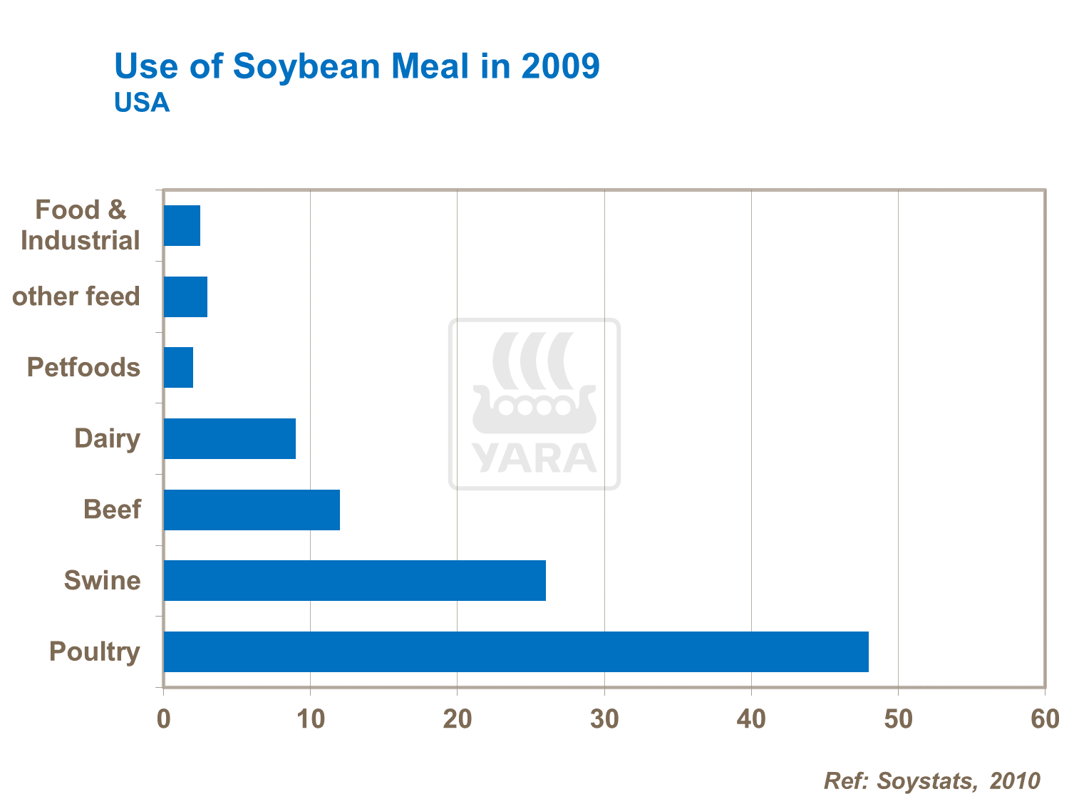 Făina de soia și porumbul sunt folosite pentru a hrăni animale, cum ar fi păsările de curte, porcinele și acvacultura. În plus față de valoarea crescută a proteinei, făina de soia poate fi folosită pentru administrarea de antibiotice și vitamine la animale.