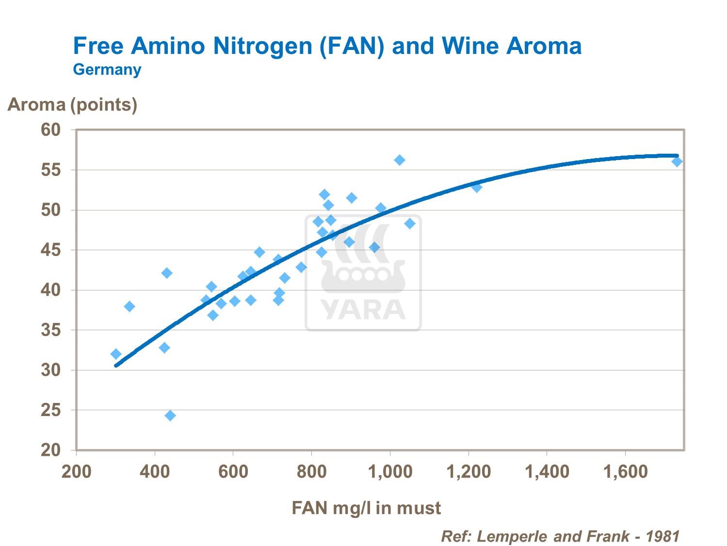 Fertilizarea cu azot poate influența pozitiv scorul de calitate a aromelor, savorii și vinului. Forma corectă a azotului este deosebit de importantă în acest sens. Studiile arată că azotul liber al aminoacidului poate crește aroma vinului.